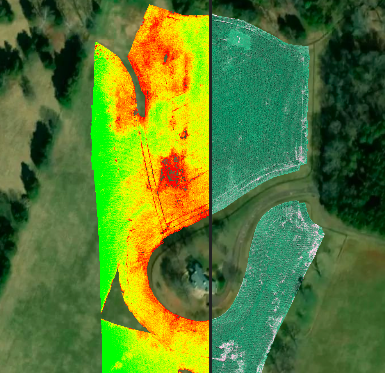 Do you need to check on the health of crops efficiently without walking hundreds of acres or potentially damaging crops with vehicles? Our multispectral drone can gather data over large acreage in minutes to provide health indices, plant counts, and show weed pressure/pest issues for focused action. Detailed multispectral analysis can be used to output variable rate prescriptions for spraying or fertilizing ensuring only areas needing treatment are covered potentially saving thousands of dollars in materials cost and minimizing environmental impact.